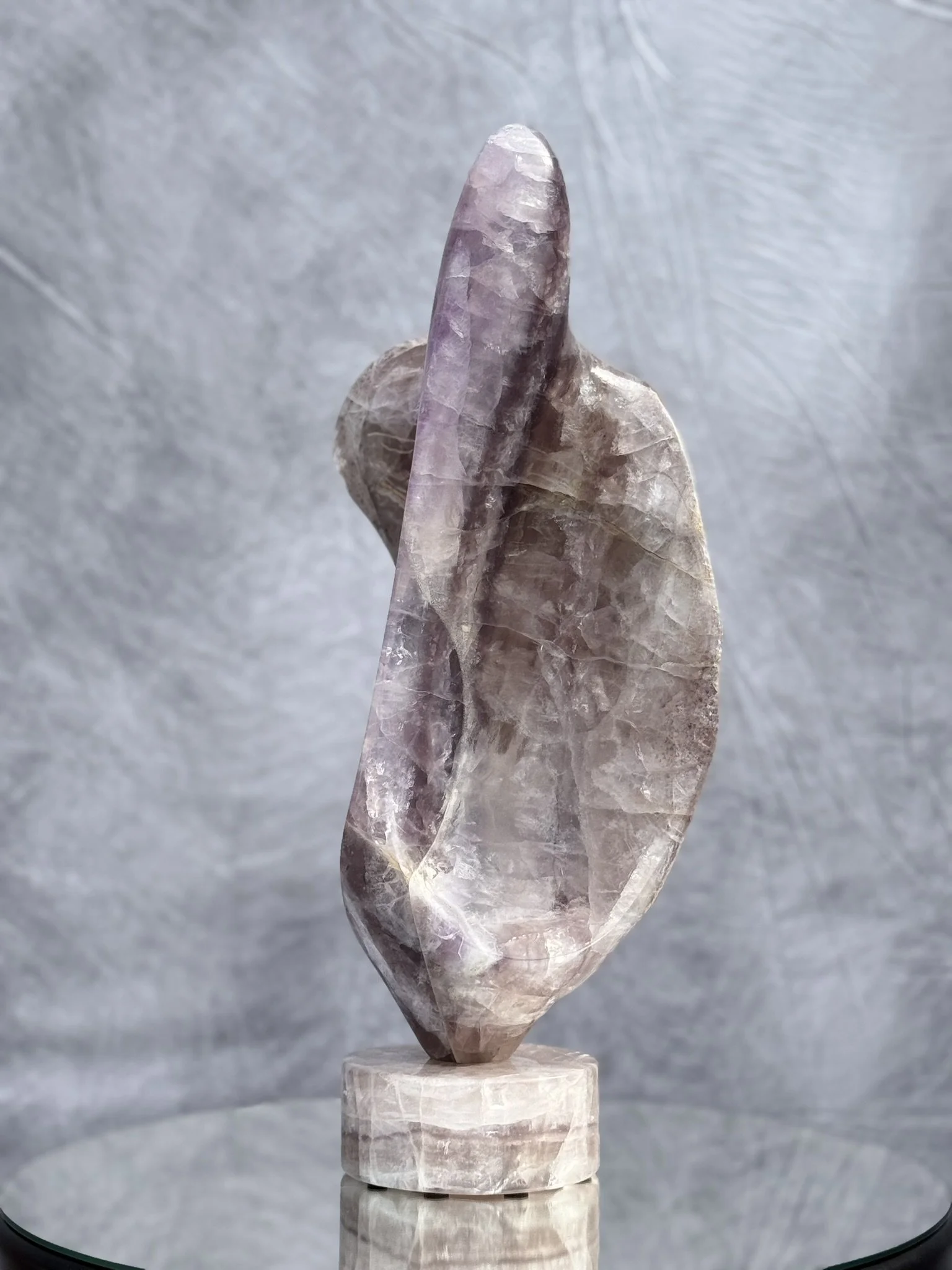 This Chinese Fluorite sculpture reflects wu wei - like water: it’s soft but also rough. It flows effortlessly around obstacles rather than trying to overcome them. This piece began with two sliced fragments that, together, revealed a new whole. Its surfaces contrast smooth polish with raw fluorite crystals. Letting go of the Mobius structure was a risk, but it made me feel stronger, more open, and more connected as an artist.